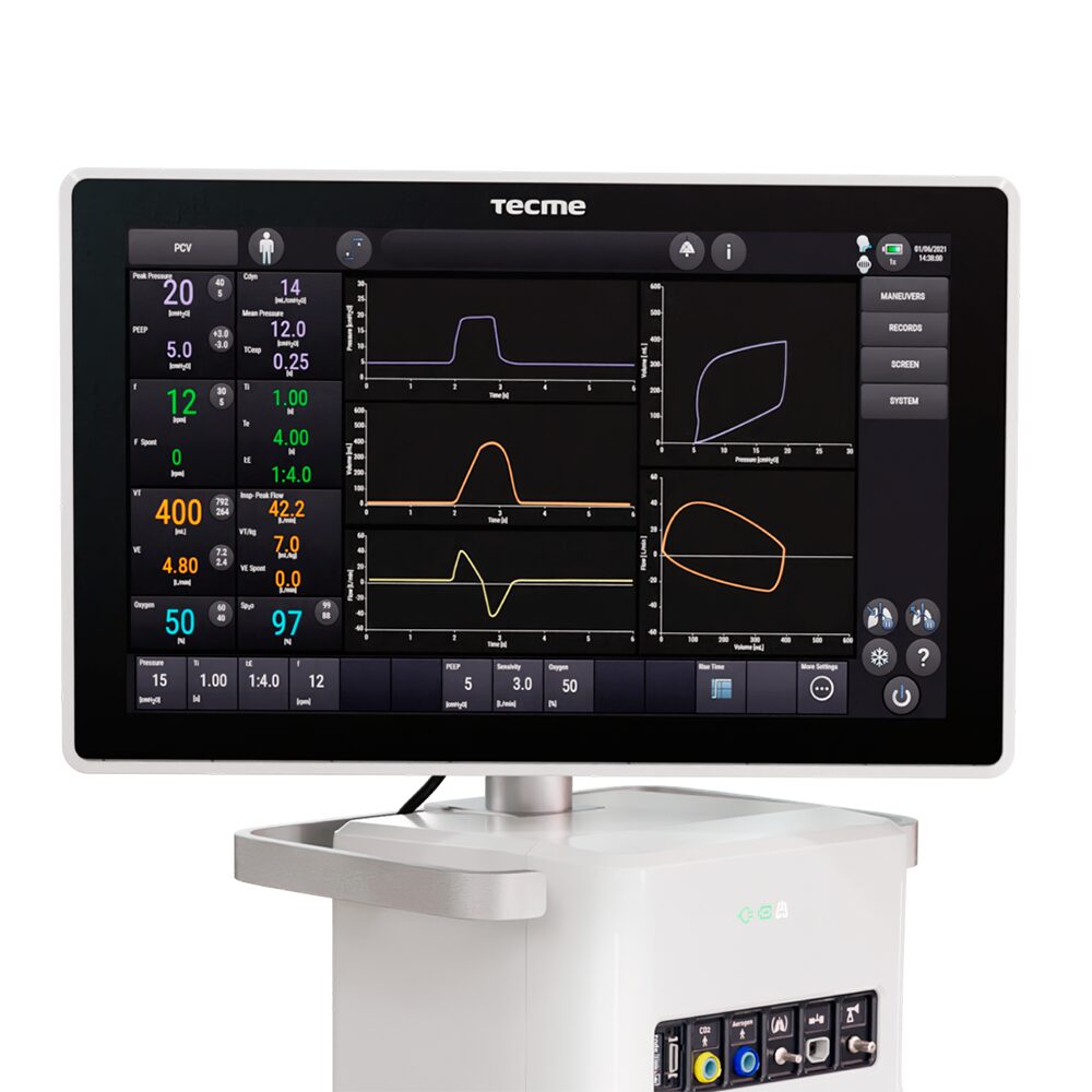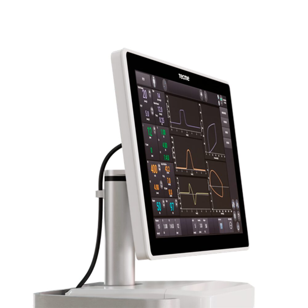 • Pantalla táctil de alta resolución: Con una interfaz de usuario intuitiva, la pantalla táctil de 18” del ventilador médico permite una operación fácil y rápida.